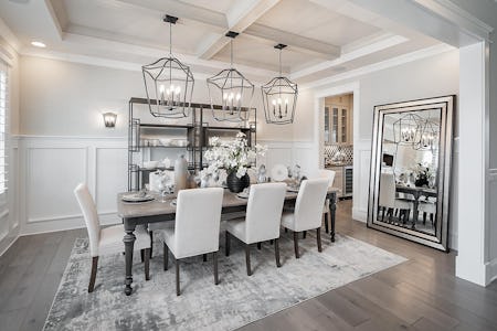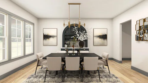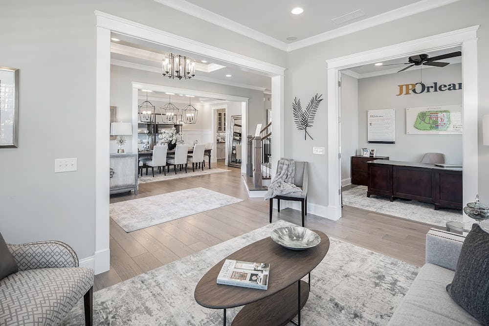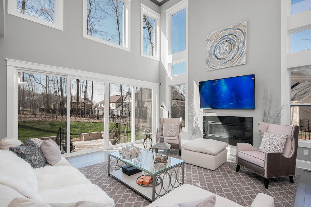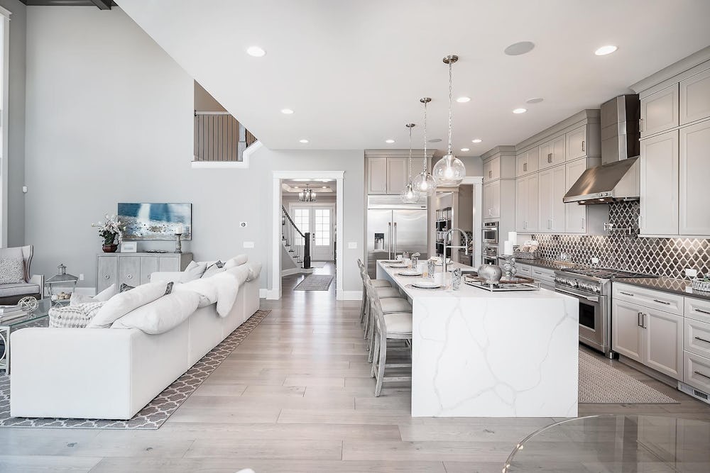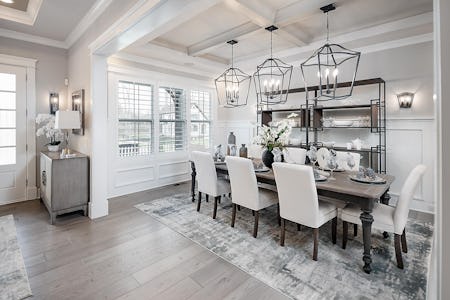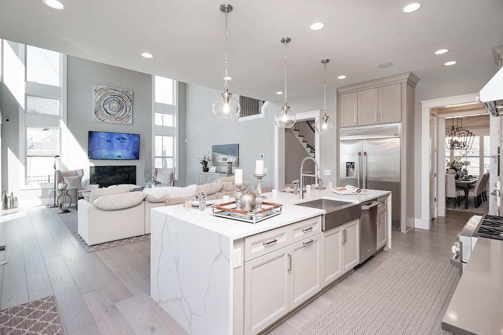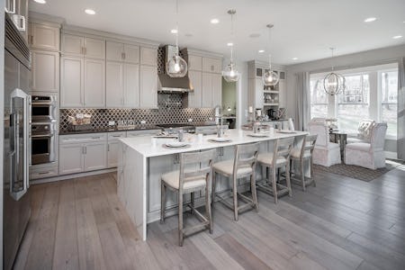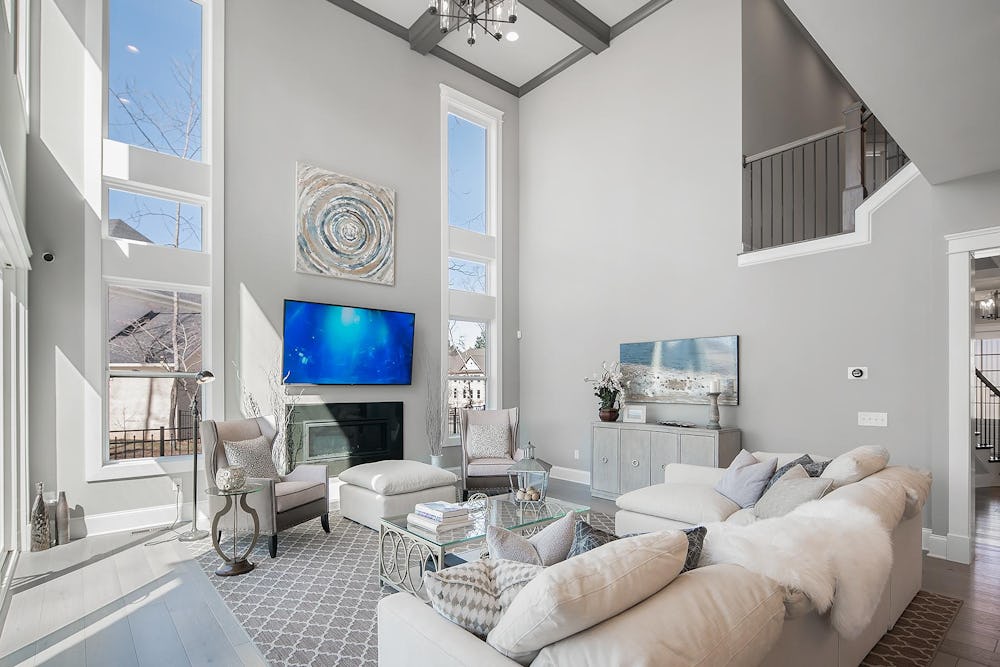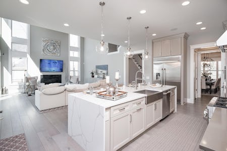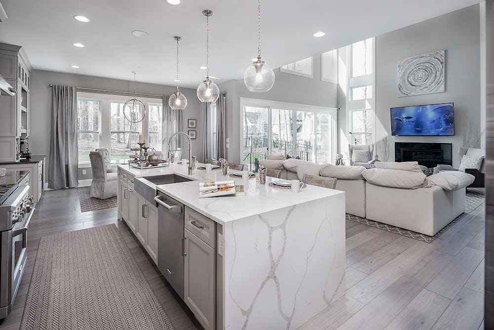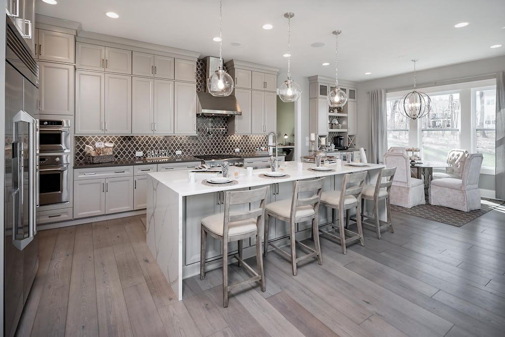 A thoughtfully designed playroom sits just off the main living area, complemented by a full bath for ultimate convenience. At the heart of the home, the chef’s kitchen is a true centerpiece featuring a generous center island with ample seating, a sophisticated butler’s pantry, and a sunlit breakfast room that invites relaxed dining. The great room creates a striking impression with soaring ceilings and a sleek gas fireplace, while the first floor also includes a private study, formal living room, and an elegant dining space perfect for refined entertaining.