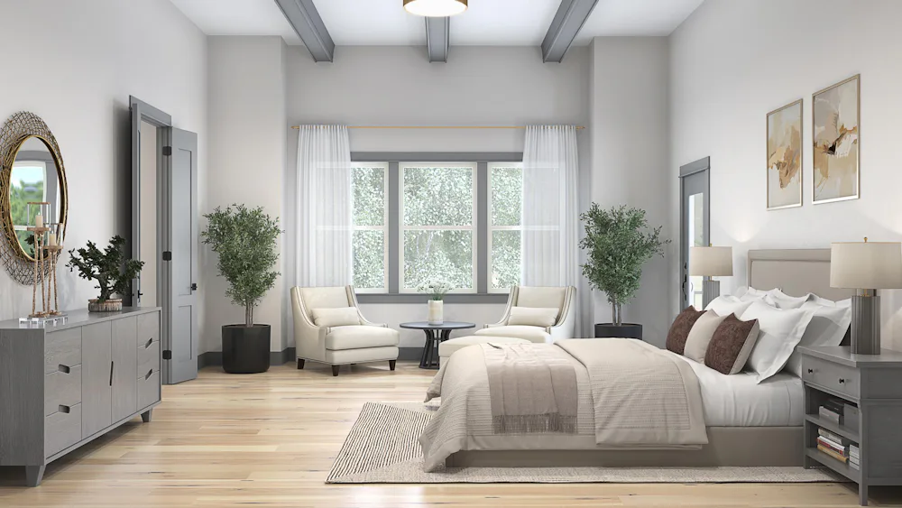 Upstairs, a versatile loft offers an exceptional space for work or leisure. Three secondary bedrooms include spacious walk-in closets, and two full bathrooms provide comfort with designer finishes. The owner’s suite is a sanctuary of luxury with two expansive walk-in closets and a spa-inspired en-suite designed with elevated details that make everyday living feel indulgent.