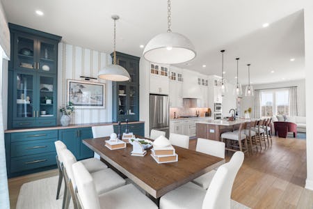 The main living level showcases an open concept floor plan with impressive 10 foot ceiling heights, designed for both everyday living and entertaining. A generously sized great room flows effortlessly into the kitchen, creating a bright and connected living space. The kitchen features a large dining area, an oversized center island with countertop overhang for additional seating, and a walk in pantry for ample storage. Hardwood stairs and an upgraded lighting package are already included in the price, adding elevated style and value from day one. An elevator rough-in is also included, offering future convenience and long term flexibility.