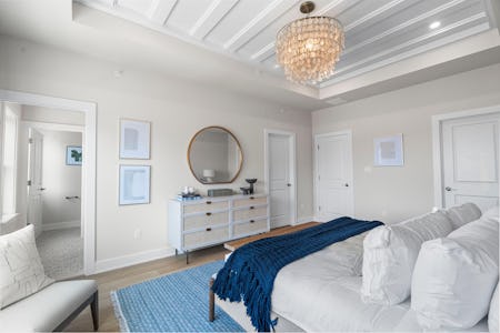 The third floor serves as a private retreat, featuring a spacious primary suite with a raised ceiling, two walk in closets, and a dual vanity bathroom with walk-in shower. Two additional secondary bedrooms, a full hall bathroom, and a conveniently located laundry room complete the upper level.