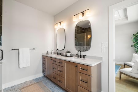 The entry level welcomes you with an inviting foyer, a private guest suite with a full bathroom, and direct access to the 2 car garage. Making the entry level ideal for hosting overnight visitors, multigenerational living, or creating a secluded home office or fitness space.