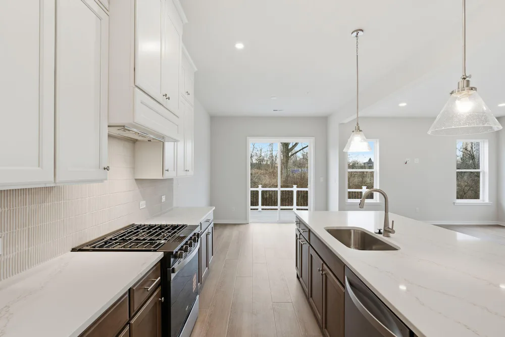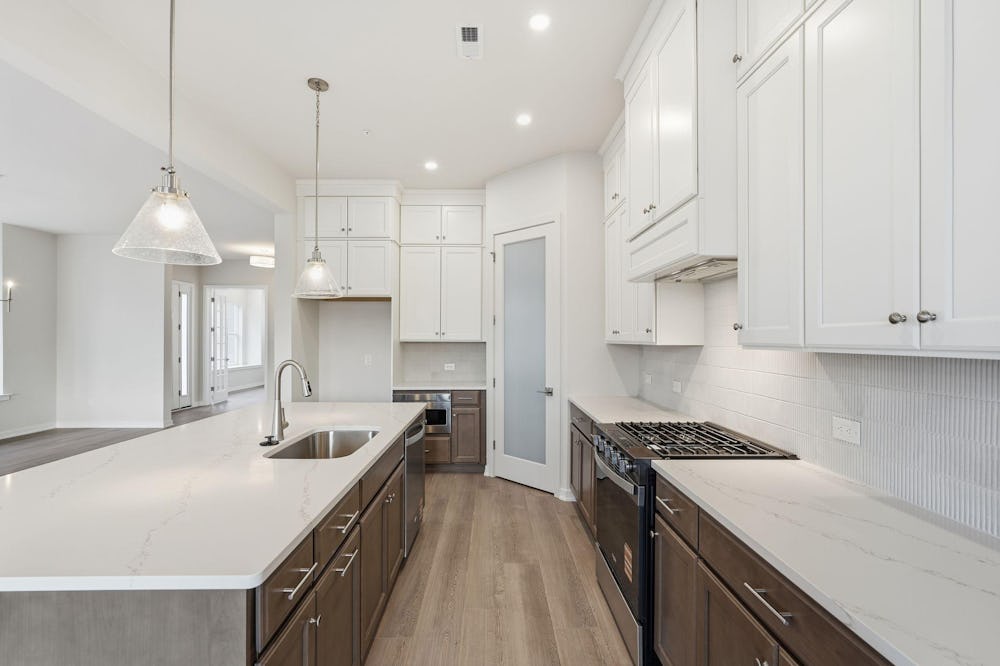 This stunning end-unit Shannon carraige home offers a welcoming side-entry foyer with a private study and formal dining room. The open-concept layout features a large great room flowing into an upgraded kitchen with abundant cabinetry, quartz-topped center island with seating, and soft-close cabinets stacked to 10' ceilings. Enjoy natural light throughout with 10' first floor and 9' second floor ceiling heights.