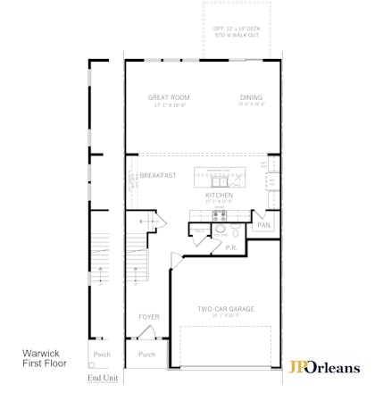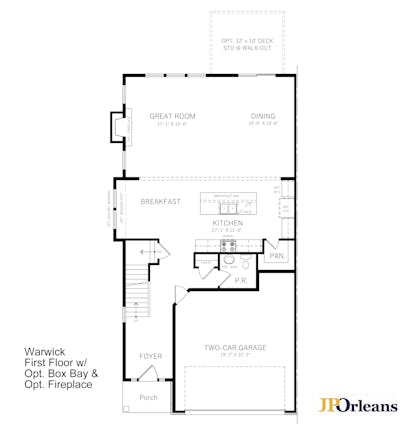 The Warwick opens to a charming foyer that invites you into this well designed 2-story carriage home. On the first floor, 10' ceilings draw you toward the back of the home where the well appointed kitchen features a large center island with breakfast bar, ample cabinetry for storage, and walk-in pantry. Adjacent, the great room and dining area is designed for everyday living with seamless access to the deck for effortless indoor-outdoor enjoyment.